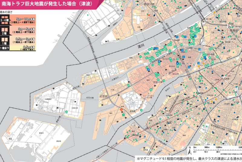 橋を渡れたとしても、渡った先の此花区や港区が被害を受けている可能性の方が高いのですが・・・。